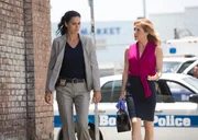 Stummer ZeugeAssistant District Attorney Valerie Hudson (Roselyn Sanchez, l.) und Detective Jane Rizzoli (Angie Harmon) besprechen die Ermittlungen im Mordfall eines schwarzen Aktivistien. Wer hatte ein Motiv?Bild: © TVNOW/ Warner Brothers Die Verwendung des VOX-Bildmaterials ist nur zur redaktionellen Berichterstattung im Zusammenhang mit der jeweiligen Sendung unter Angabe der Credits/Quellenangabe und Beachtung