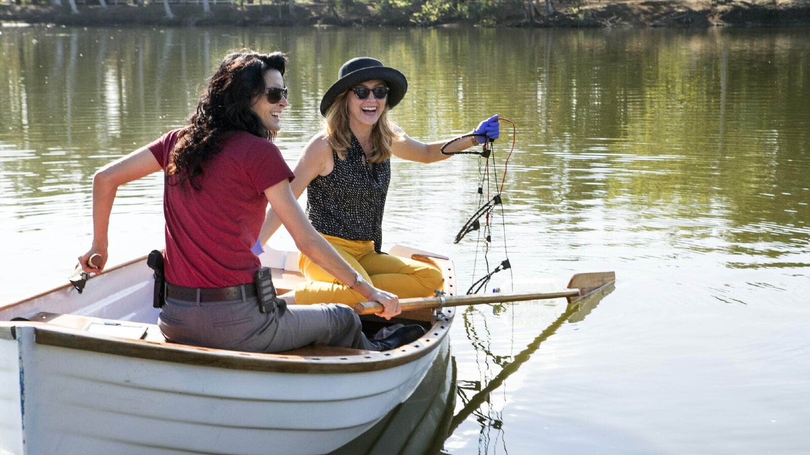 Am HakenIn ihrem neuesten Fall beschäftigt sich das Team rund um Jane Rizzoli (Angie Harmon, l.) und Maura Isles (Sasha Alexander) mit einem Mord in der Angelsportszene.Bild: © RTL / Warner Bros