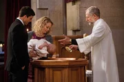 Mord in der KircheDer Sohn von Tommy Rizzoli (Colin Egglesfield, l.) und Lydia Sparks (Alexandra Holden) T.J. (Darsteller nicht bekannt) wird von Pfarrer Crowley (Timothy Landfield) getauft. Doch es ist ein Tag voller böser Überraschungen.Bild: © VOX / Warner Bros