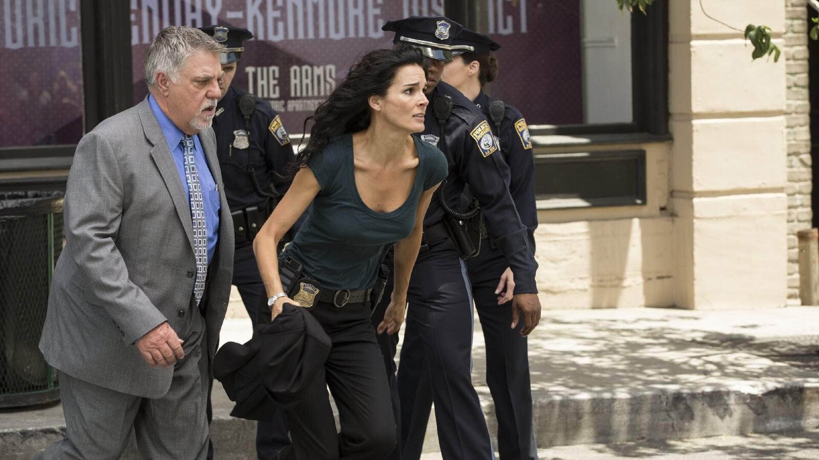 Pfusch am BauDet. Jane Rizzoli (Angie Harmon, l.) ermittelt im Mordfall eines Schauspielers, als das Theatergebäude einstürzt.Bild: © TVNOW / Warner Bros