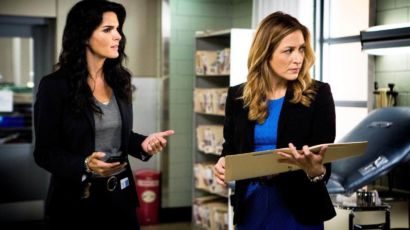 TodesurteilIn den Akten einer ermordeten Richterin stoßen Jane Rizzoli (Angie Harmon, l.) und Maura Isles (Sasha Alexander) auf interessante Informationen.Bild: © TVNOW / Warner Bros