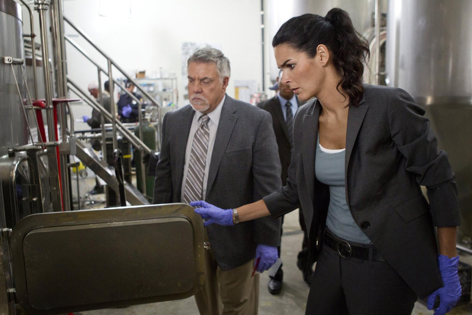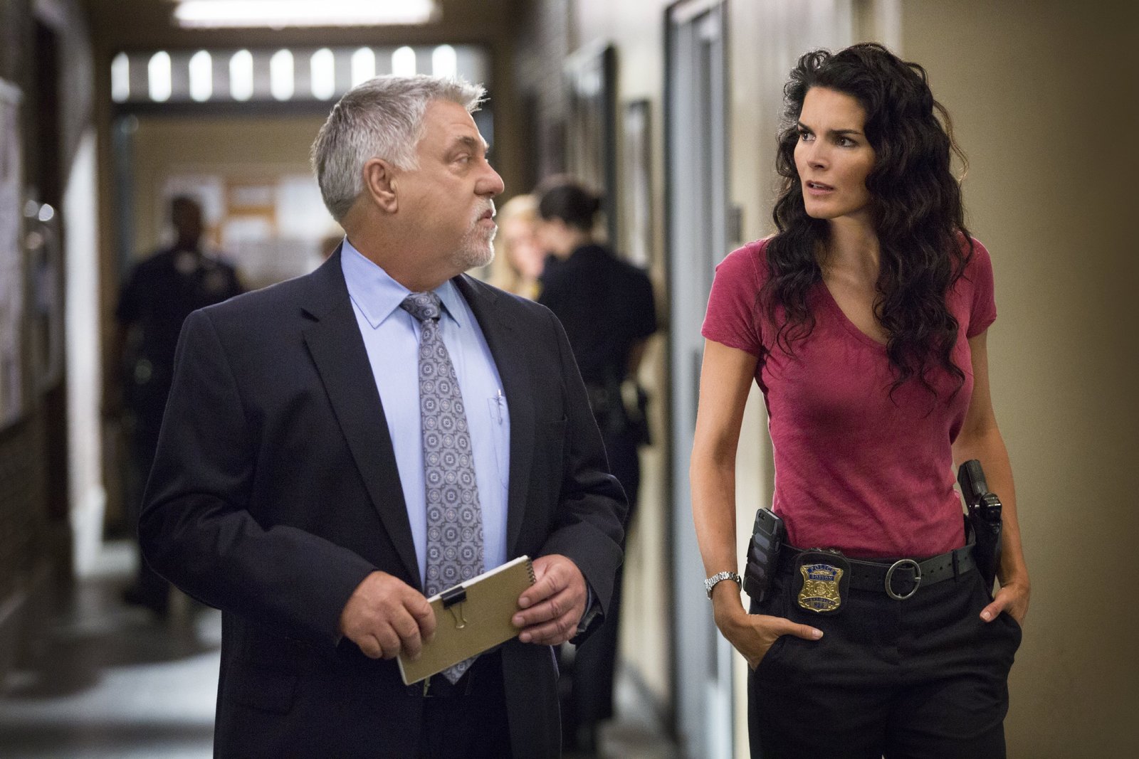 AbgründeJane Rizzoli (Angie Harmon) ist von der Unschuld des Staatsanwalts überzeugt. Vince Korsak (Bruce McGill) hat bei einem Verhör einen interessanten Hinweis erhalten.Bild: © VOX/Warner Bros.