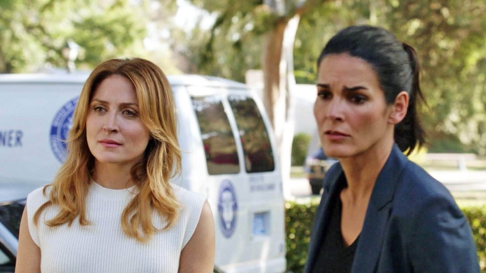 PechsträhneDie Ruhe vor dem Sturm: Claire Hanes (Rebecca Corry, l.) und Maura Isles (Sasha Alexander) unterhalten sich. Doch gleich gibt es Ärger...Bild: © TVNOW / Warner Bros