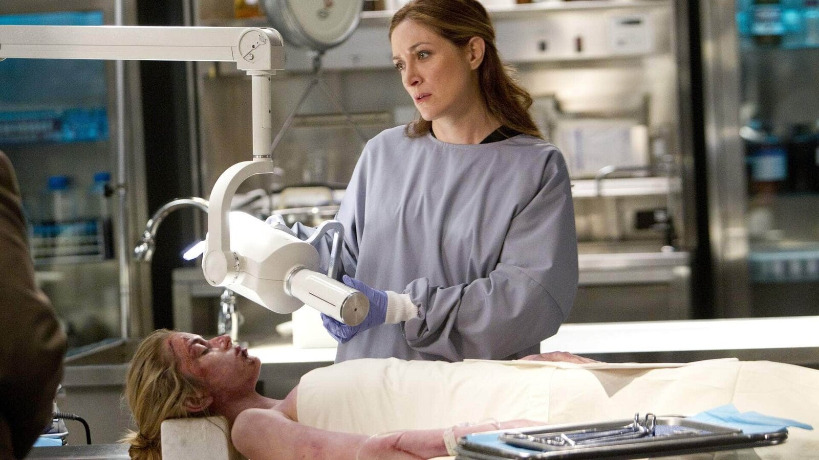 LandgangDr. Maura Isles (Sasha Alexander, r.) untersucht die Leiche der jungen Kim (Brittany Finamore). Sie wurde vor ihrem Tod nicht nur misshandelt, sondern auch vergewaltigt. Wer ist zu so etwas fähig?Bild: © TVNOW / Warner Bros