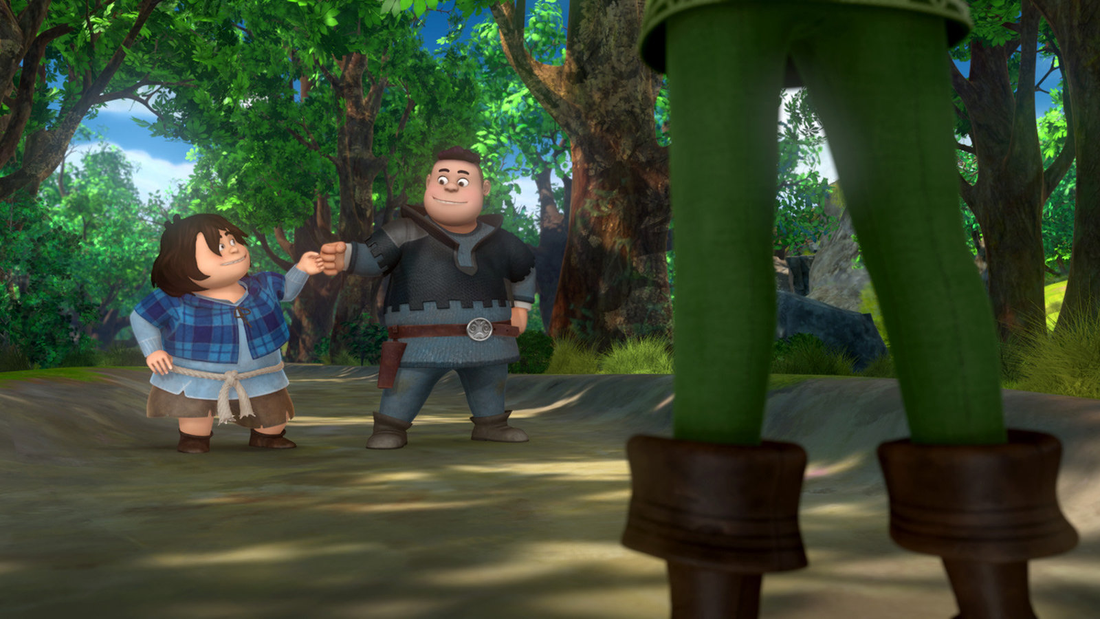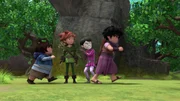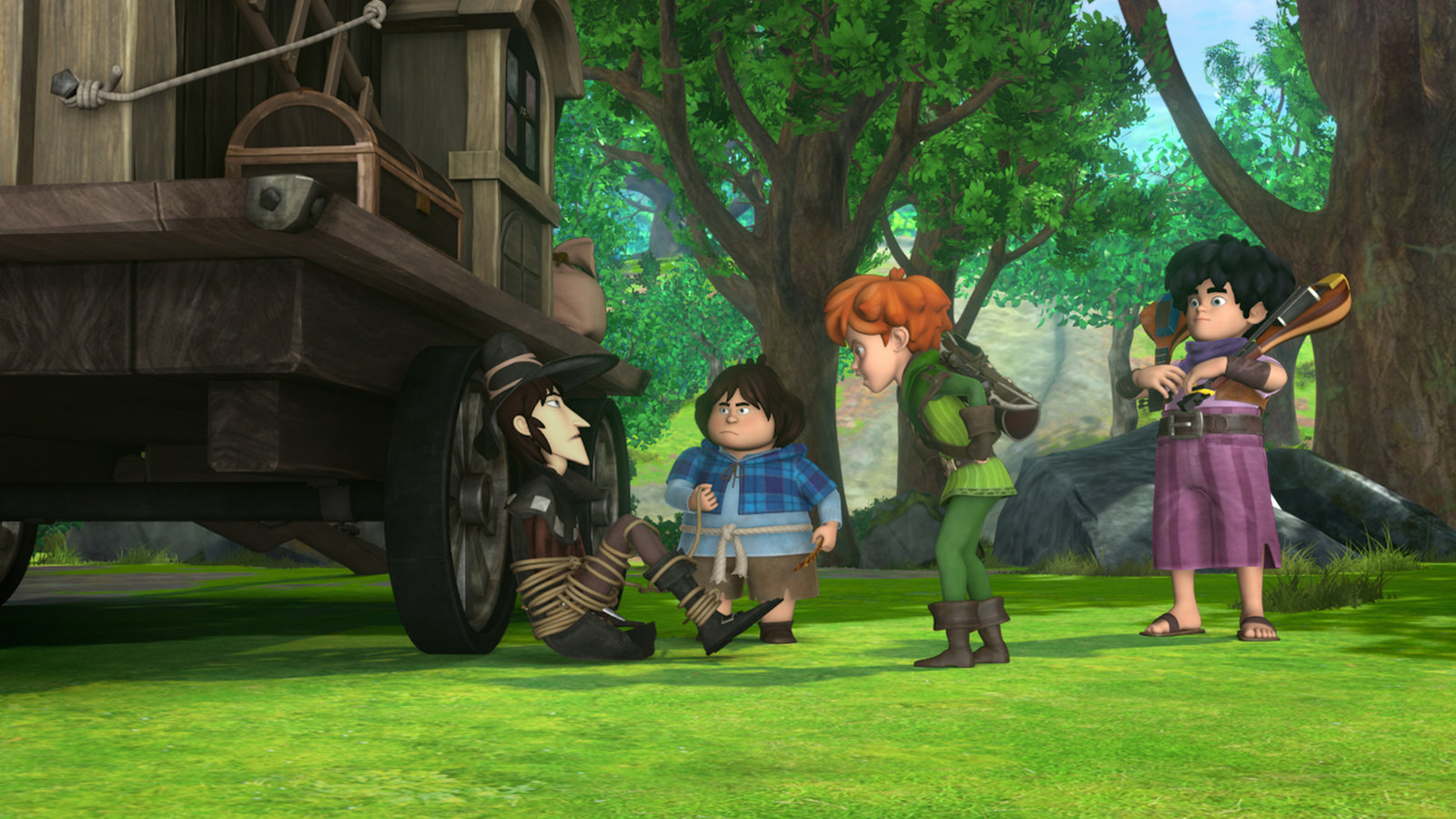 VergeigtTuck, Robin Hood und Little John haben den Geigendieb bis zu seinem Versteck verfolgt und stellen ihn zur Rede.Bild: © ZDF/Method Animation/DQ Entertainment/Fabrique d'images/ZDF Enterprises/De Agostini