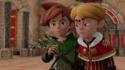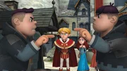 Der SpionPrinz John ist wütend auf Ralf und Rolf. Marian und Scarlett sind froh, dass alles gut ausgegangen ist.Bild: © ZDF/Method Animation/DQ Entertainment/Fabrique d'images/ZDF Enterprises/De Agostini