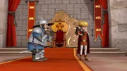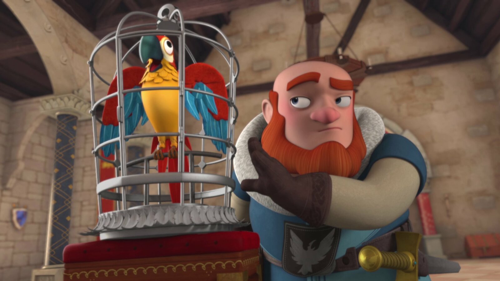 Plappermaul PapperlacacosLord Gudfred überreicht König Richard einen Papagei als Zeichen der Entschuldigung.Bild: © ZDF und © 2018 – Method Animation – DQ Entertainment Intern