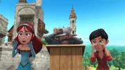 Die Jagd nach dem SchatzDerke berichtet Marian von dem Schatz, den er entdeckt hat. Er liegt versteckt an dem Platz, wo er früher als Drache oft war, bevor ihn Marian in einen Hamster verzauberte.Bild: © ZDF und 2014 Method Animation