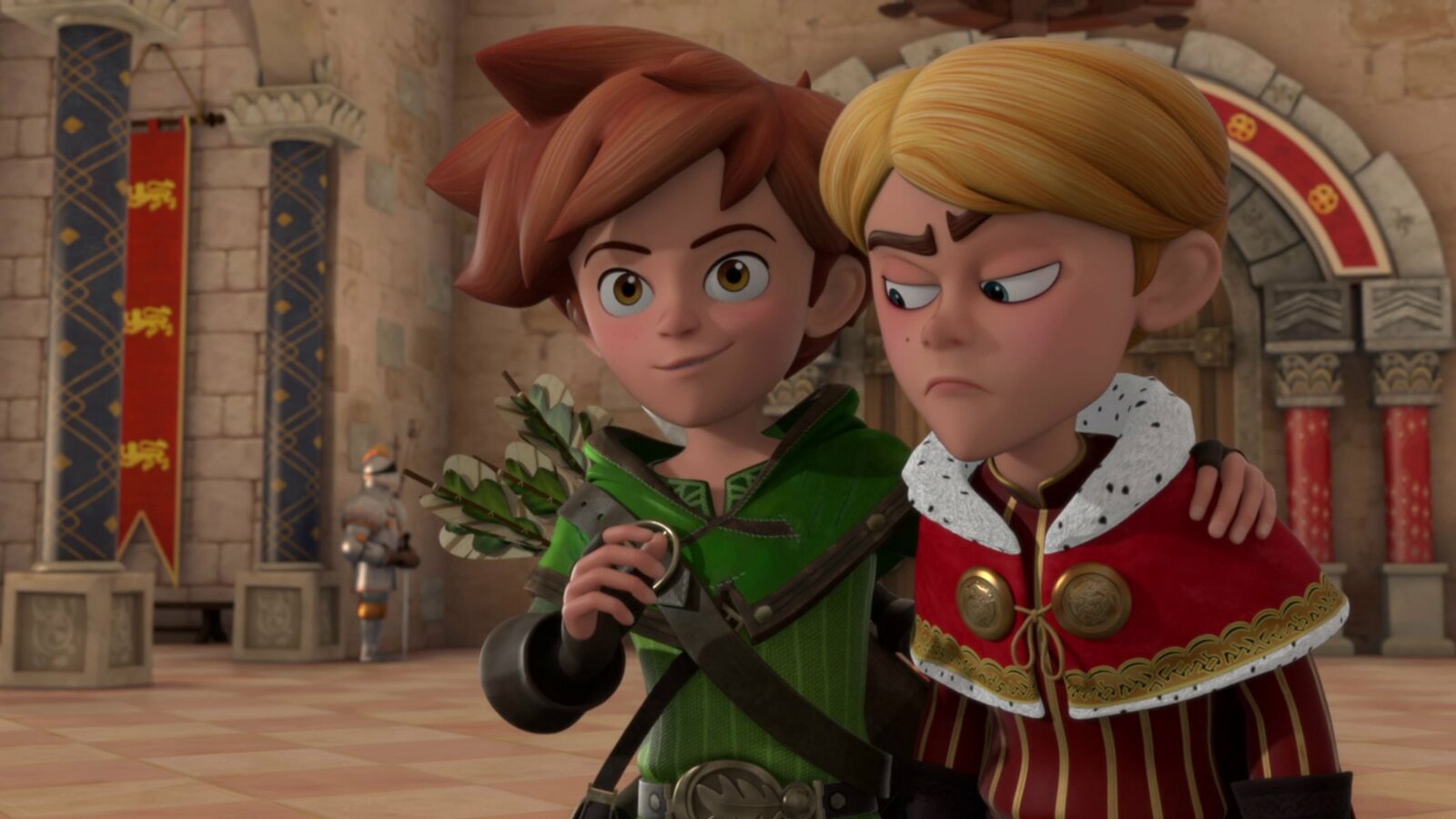 Robin Tuck"Robin Hood - Schlitzohr von Sherwood", "Robin Tuck." Prinz John will seinen Thronsaal mit einem prunkvollen Spielfeld ausstatten. Deshalb nehmen seine Männer einfach einem armen Bauern die Bretter weg, mit denen seine Scheune repariert werden sollte. Robin plant einen Überraschungsangriff auf die Diebe, um dem Bauern die Beute wieder zurückgeben zu können. Doch weil Tuck ein Missgeschick nach dem anderen passiert und Marian wieder einmal einen nicht ganz perfekten Zauberspruch einsetzt, geht einiges schief.Bild: © ORF