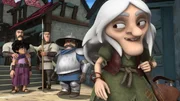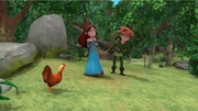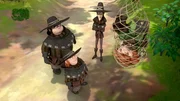 Eine Flasche voll GlückLittle John wurde vom Sheriff und seinen Männern festgenommen. Die Frau verspricht dem Sheriff noch mehr Glück, wenn er ihr die mit Glück gefüllten Fläschchen abkauft.Bild: © ZDF und 2014 Method Animation