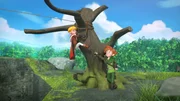 Der TrottelClarence will den Dorfbewohnern helfen, bringt sich selbst dabei aber in Schwierigkeiten. Zum Glück ist Robin Hood zur Stelle.Bild: © ZDF und 2014 Method Animation