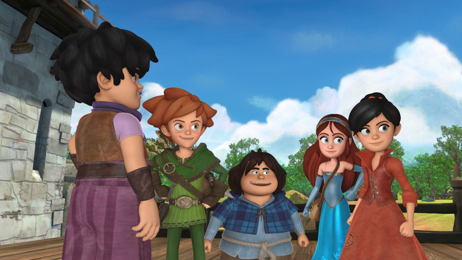 Ein Streich zu vielSie halten zusammen. Die Freunde: Little John, Robin Hood, Tuck, Marian und Scarlett.Bild: © ZDF und 2014 Method Animation