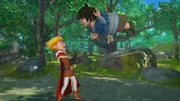 Operation SpukRobin Hood wundert sich, dass Tuck so weit sehen kann. Tuck erklärt ihm seine Erfindung: ein Fernglas.Bild: © ZDF/Method Animation/DQ Entertainment/Fabrique d'images/ZDF Enterprises/De Agostini