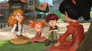 Die WindmühleRalf und Rolf, die Söhne des Sheriffs, belauschen die Dorfbewohner.Bild: © ZDF und 2014 Method Animation