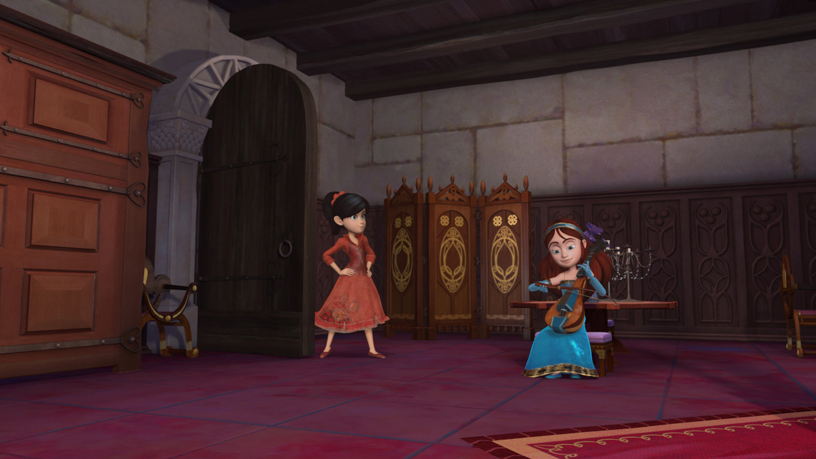 VergeigtScarlett schaut ihrer Freundin Marian zu, die für den Musikwettbewerb Geige übt.Bild: © ZDF und 2014 Method Animation