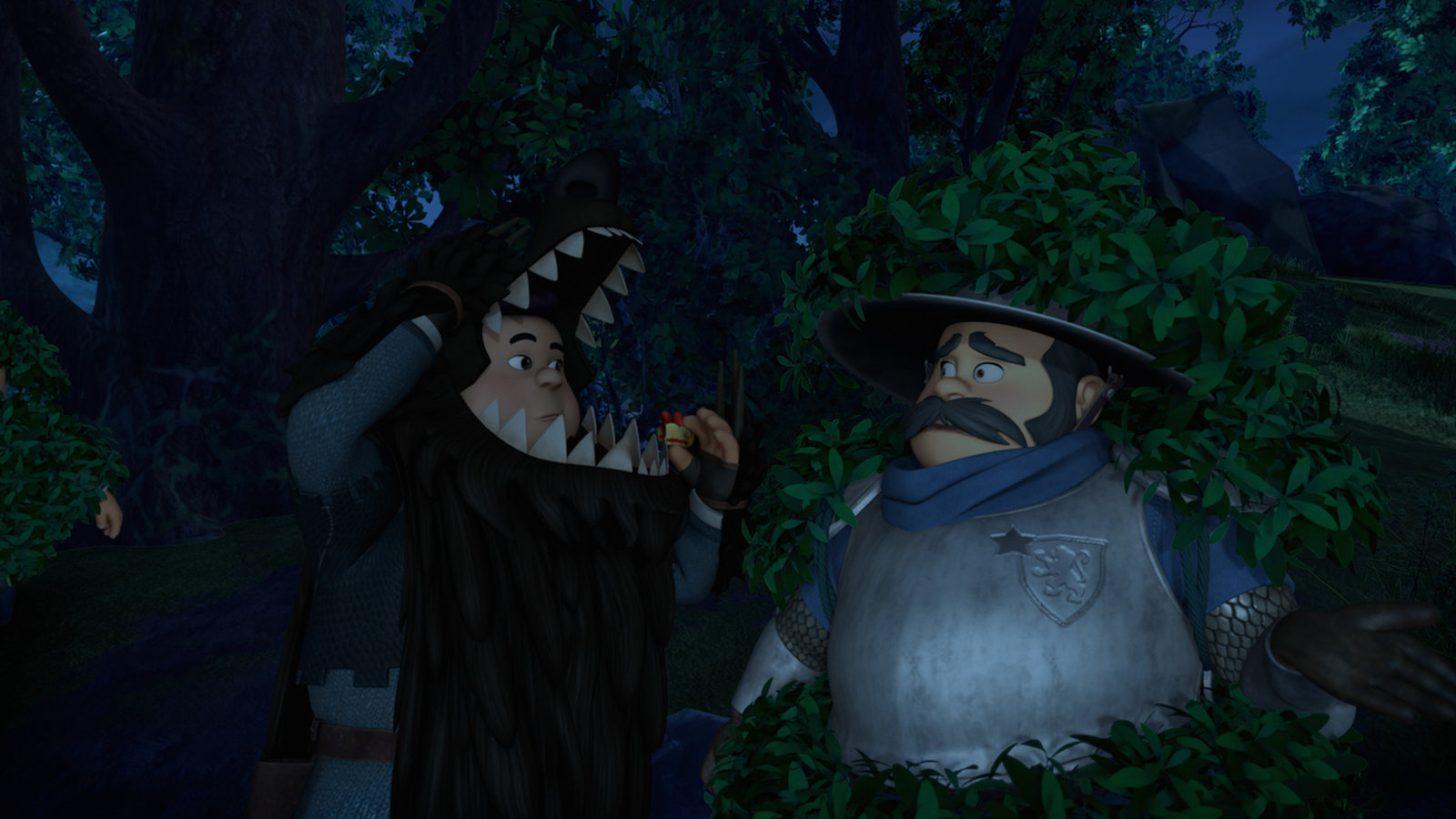Der WerwolfEine Falle! Der Sheriff bekommt Informationen von seinem Sohn, der sich als Werwolf verkleidet hat um so Robin Hood anzulocken.Bild: © ZDF und 2014 Method Animation