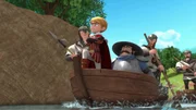 Die MautbrückePrinz John (2.v.l.) und sein Gefolge auf dem Weg zu einer neuen Geldquelle.Bild: © ZDF/Method Animation/DQ Entertainment