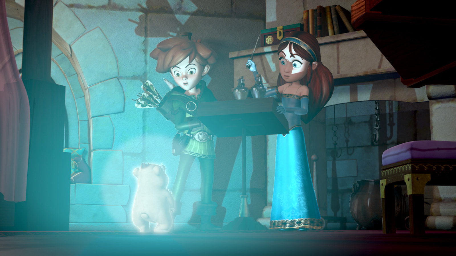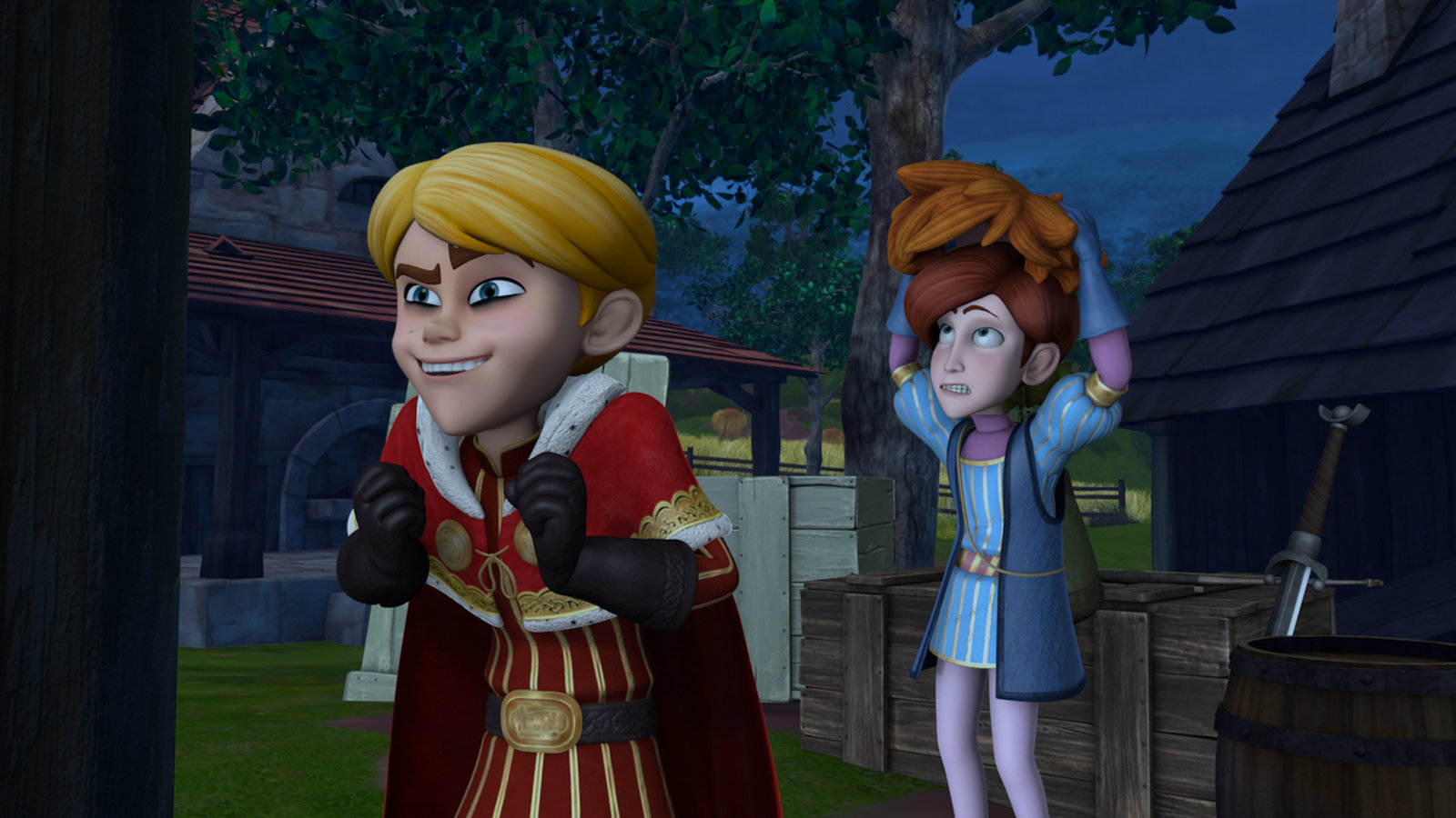 Quälgeist IsabelleRobin Hood (M.) hat Prinz Johns Gemälde entdeckt.Bild: © ZDF und © 2018 – Method Animation – DQ Entertainment Intern