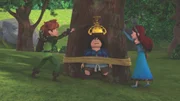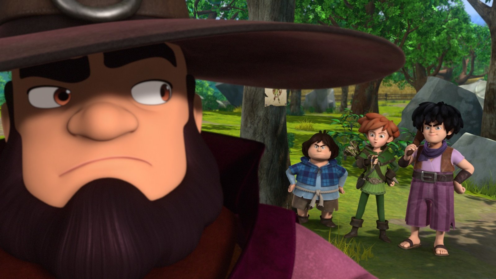 Der HypnotiseurTuck, Robin Hood und Little John haben den Zauberer in seinem Versteck mit den gestohlenen Sachen erwischt und stellen ihn zur Rede.Bild: © ZDF/Method Animation/DQ Entertainment/Fabrique d'images/ZDF Enterprises/De Agostini