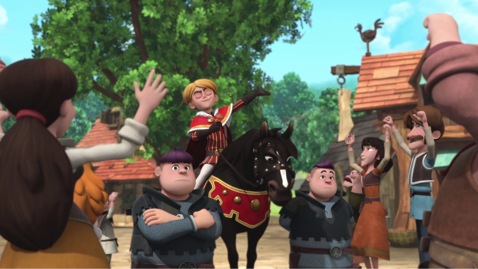 Tuck, der HeldTuck wird von den Dorfbewohnern als Held gefeiert.Bild: © ZDF und © 2018 – Method Animation – DQ Entertainment Intern