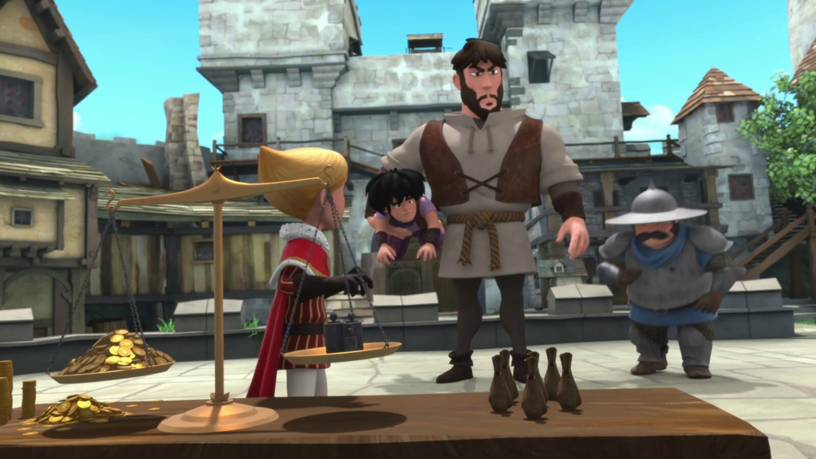 Ein fieser TrickMit Bruno dem Bärenstarken (2.v.re.) ist nicht gut Kirschen essen.Bild: © ZDF/Method Animation/DQ Entertainment