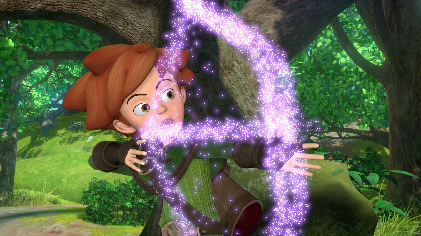 Robin TuckPfeil und Bogen in Robin Hoods Händen verschwinden plötzlich. Daran ist ein missglückter Zauberspruch von Marian schuld.Bild: © ZDF/Method Animation/DQ Entertainment/Fabrique d'images/ZDF Enterprises/De Agostini