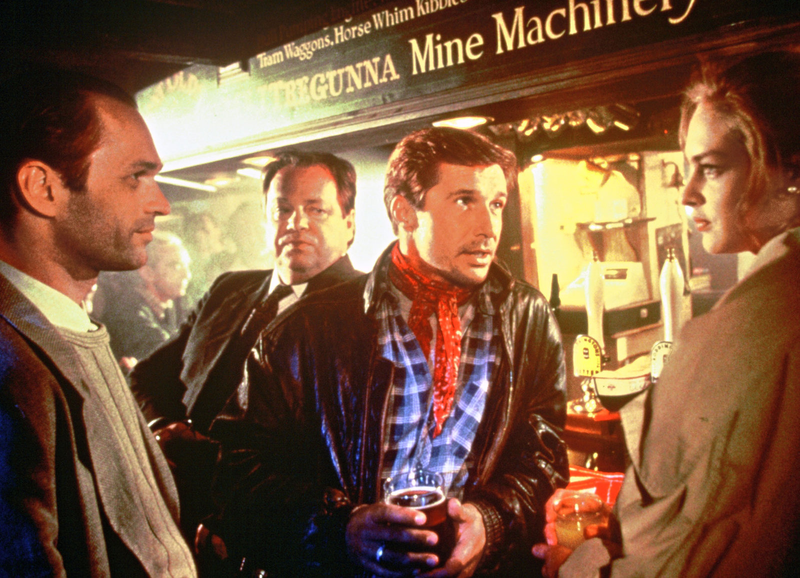 Stürmische BegegnungIm Dorfpub: Horst-Günter Marx als Eliot (l.), Michael Lesch als Antiquitätenhändler Joss (2.v.r.), Sophie von Kessel als RebeccaBild: © SRF/ZDF/ORF