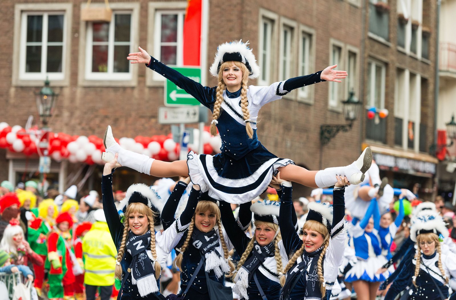 Der Rosenmontagszug aus Düsseldorf zieht unter dem Motto "Unser Rad schlägt um die Welt" durch die NRW-Landeshauptstadt. - Tanzgarde auf dem Rathausplatz in Düsseldorf. - Tanzmariechen der Tanzgarde der Karnevalsfreunde der Katholischen Jugend (Archivfoto)Bild: © WDR/Thomas von der Heiden