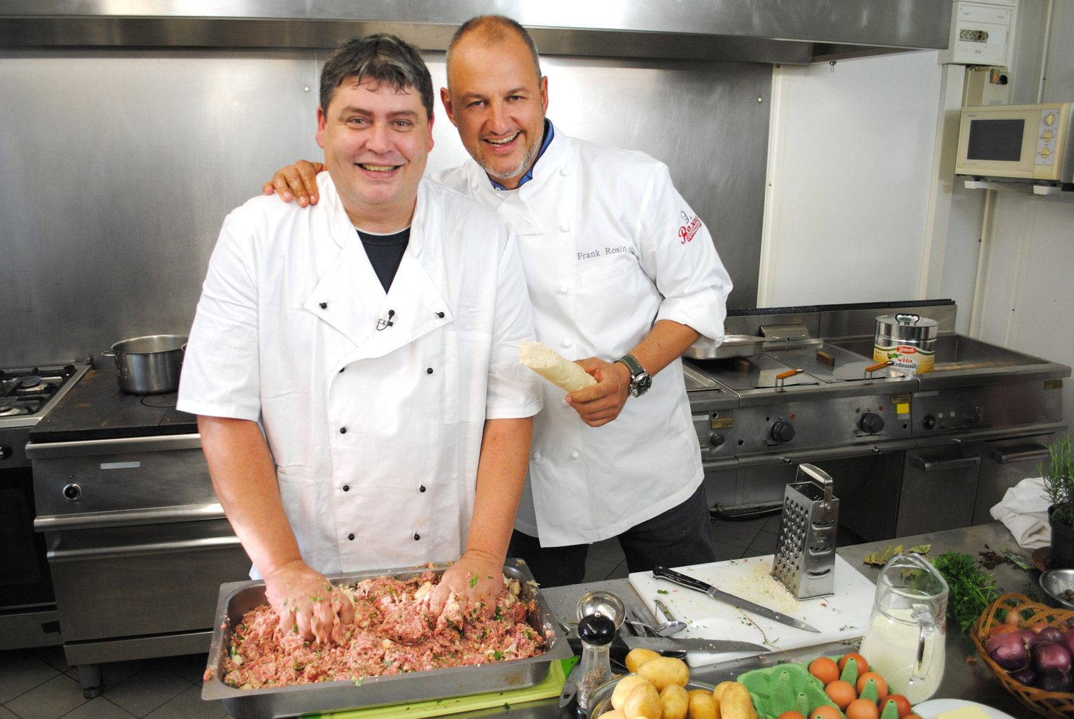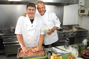 "Kastanienhof", KitzingenFestgefahren im Alltagstrott: Sternekoch Frank Rosin (r.) muss Koch Stefan Wolbeck (l.) im "Kastanienhof" aufwecken und mit neuen Ideen und Tipps aus seinem Trott herausholen. Wird ihm das gelingen?Bild: © Kabel Eins