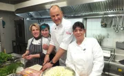 "Jagdgaststätte Elsthal" in Luckenwalde (Brandenburg)Die Zickereien zwischen den Cassandra (l.), Sina (2.v.l.) und Annette (r.) sollen endlich ein Ende haben. Sternekoch Frank Rosin (2.v.r.) rät den Damen, sich auf das Wesentliche zu konzentrieren, denn sonst sieht er Schwarz für die "Jagdgaststätte Elsthal" ...Bild: © kabel eins