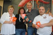 Kulli-Nari: Notruf aus der PommesbudeSternekoch Frank Rosin (2.v.r.) ist schnell klar: Hier liegt der Fehler im Detail. Er will Hardy (r.) und seiner Frau Martina (2.v.l.) helfen ...Bild: © kabel eins Eigenproduktionsbild frei