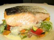 Die "Amtslinde" in Osterholz-ScharmbeckHauptgang: Auf der Haut gebratener Lachs mit Graupenrissotto und Pfannengemüse.Bild: © Kabel Eins