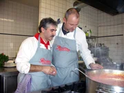 "Schlossgaststätte Falkenberg" in Moosach bei MünchenFrank Rosin (l.) schaut Heiko (r.) bei der Arbeit über die Schulter und gibt ihm wichtige Tipps.Bild: © Kabel Eins