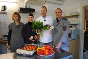 Der Straußenhof in Großderschau - Erlebnisgastronomie im KasernentonDoris (l.), Nicole (2.v.l.) und Enrico (r.) hoffen auf die Hilfe von Sternekoch Frank Rosin (2.v.r.) ...Bild: © kabel eins Eigenproduktionsbild frei
