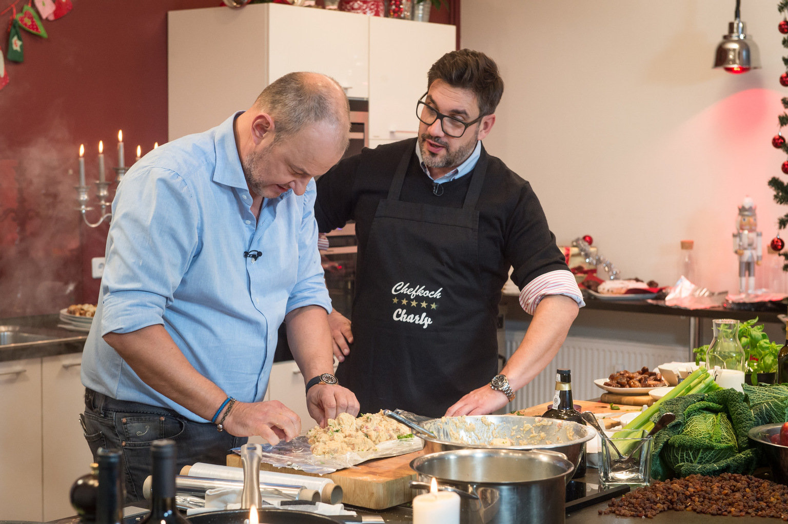 Das Weihnachts-SpezialAuch in der Küche steht Hakan (r.) dem Sternekoch Frank Rosin (l.) zur Seite, vor allem wenn es darum geht ein besonderes Weihnachtessen zu zaubern ...Bild: © SAT.1 / Claudius Pflug