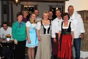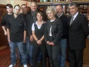 "Kochi's unmögliches Wirtshaus" in KönigsbrunnFrank Rosin (r.) und das Team: (v.l.n.r.) Silkes Mutter Helga Koch, Freundin Manuela Seifert, Tochter Sophie, Lebensgefährte Enrico Beutler, Inhaberin Silke Koch, Servicekraft Ulf Lorenz, der neue Koch Rene Wirnitzer und Servicekraft Kunigunde "Conny" AnhutBild: © kabel eins