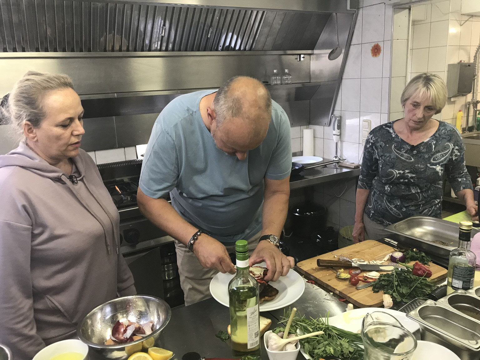 Culo Del Mondo, WerdohlNachdem die 55-jährige Andrea Cambiolo (r.) mit ihrem Restaurant "Culo del Mondo" (Übersetzung: Arsch der Welt) pleitegeht, übernimmt kurzerhand ihre unerfahrene Schwester Silvana (l.) das Ruder. Kann Sternekoch Frank Rosin (M.) den beiden helfen?Bild: © kabel eins