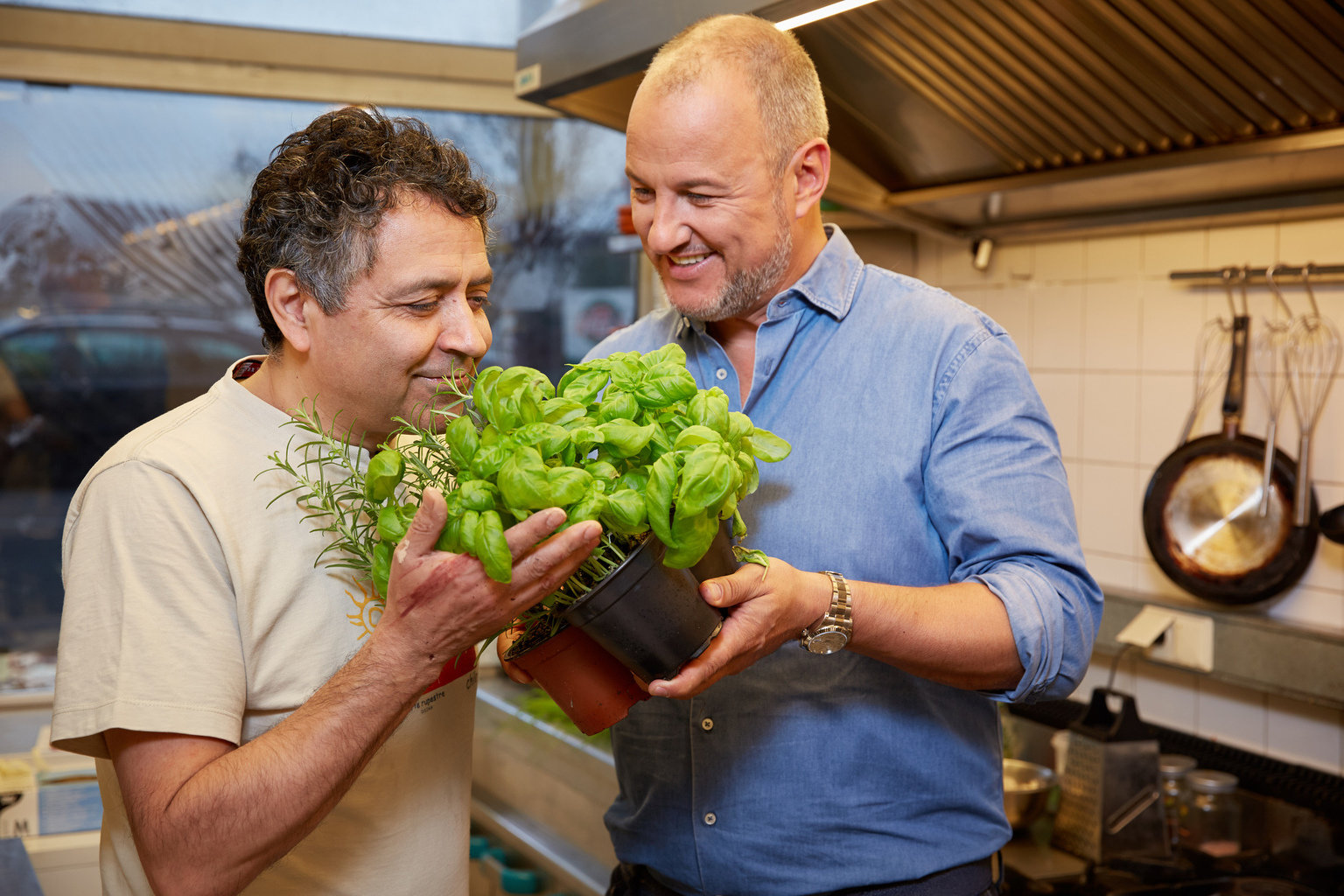 Das Weihnachts-SpezialHaben gemeinsam schon einige spannende, skurrile und schöne Einsätze erlebt: Kameramann Charly (l.) und Sternekoch Frank Rosin (r.) ...Bild: © SAT.1 / Claudius Pflug