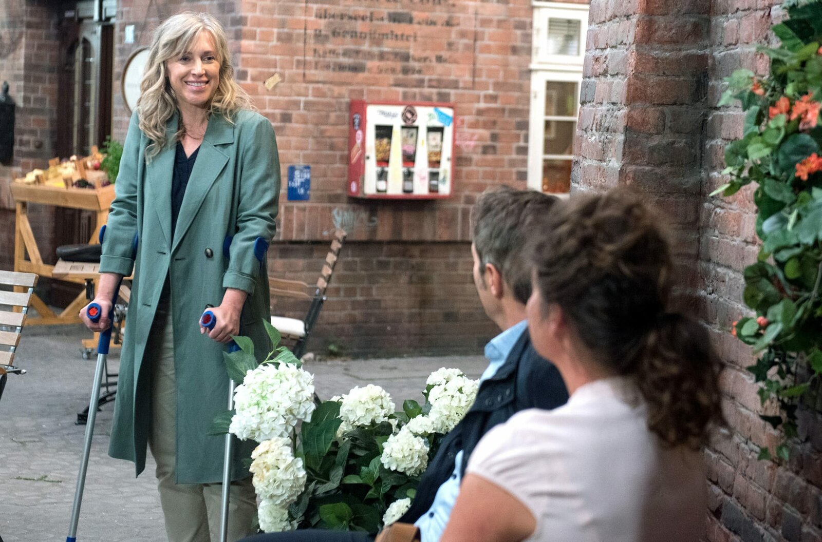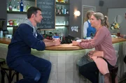 Eine herbe EnttäuschungCarla (Maria Fuchs, l.) und Patrick (Constantin Lücke, r.) sind irritiert, dass Gunter kurz vor der Eröffnung der Vinothek noch nicht da ist.Bild: © ARD/Nicole Manthey