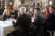 Das Praktikum kann beginnenHelen (Patricia Schäfer, r.) zeigt Peer (Jörg Pintsch, l.) demonstrativ, dass sie mit Arne (Christian Rudolf, 2.v.r.) glücklich ist.Bild: © ARD/Nicole Manthey