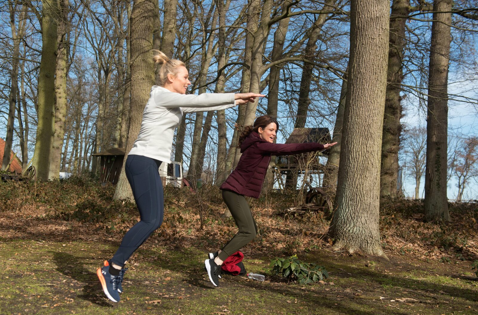 Der Griff zur FlascheCarla (Maria Fuchs, l.) und Britta (Jelena Mitschke, r.) können locker über Timos Eigenarten sprechen und amüsieren sich dabei.Bild: © ARD/Nicole Manthey