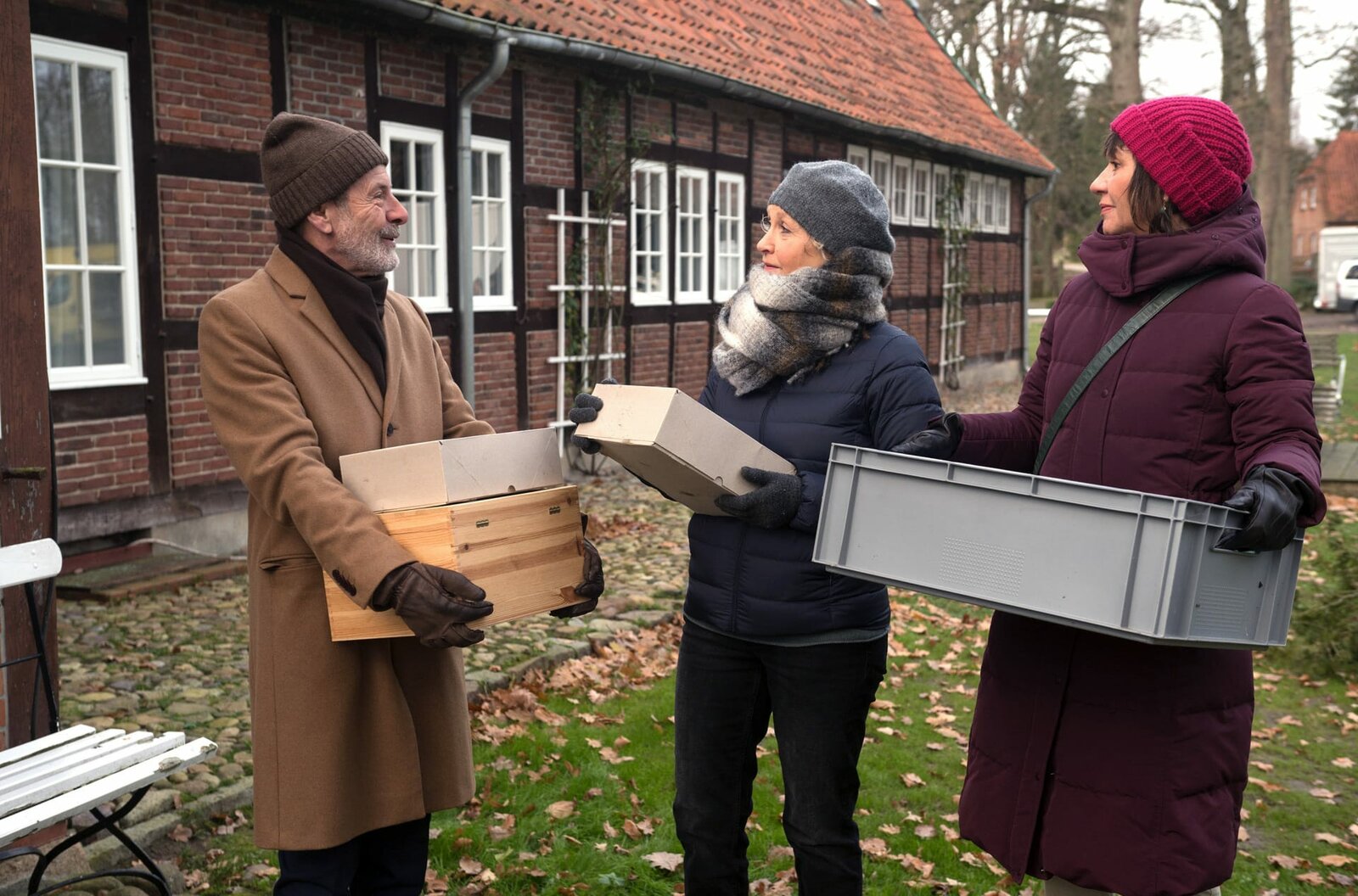 UnentschiedenNur mit Mühe können Dörte (Edelgard Hansen, M.) und Gunter (Hermann Toelcke, l.) Merle (Anja Franke, r.) auf andere Gedanken bringen.Bild: © ARD/Nicole Manthey