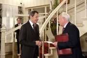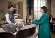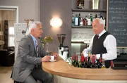 ZweifelAls Vicky (Laura Preiss, l.) behauptet, dass das Hotelpersonal unter Gunters mangelnder Führung leidet, beginnt Gunter (Hermann Toelcke, r.) an sich zu zweifeln.Bild: © ARD/Nicole Manthey