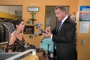 Herausforderung für MarkTorben (Joachim Kretzer, r.) will die modernen Medien nutzen und initiiert einen Plogging-Flashmob (mit Samantha Viana, l.).Bild: © ARD/Nicole Manthey