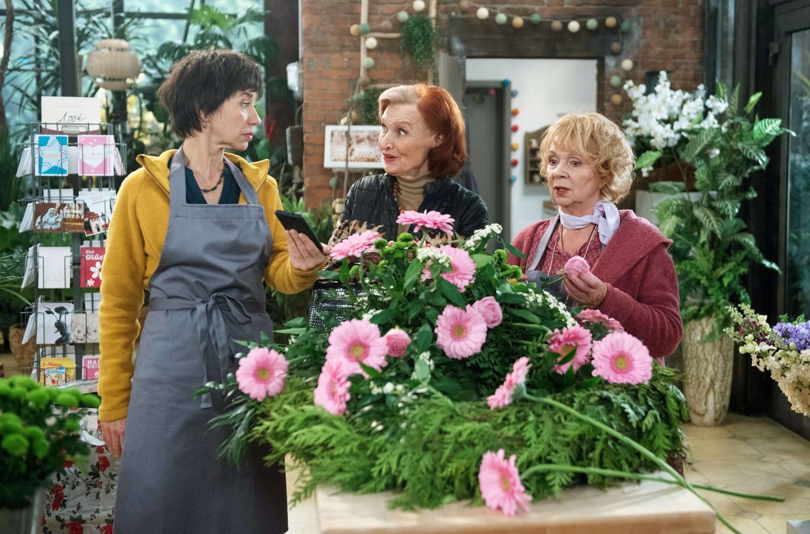 Das mediale DebakelJohanna (Brigitte Antonius, M.), Merle (Anja Franke, l.) und Erika (Madeleine Lierck-Wien, r.) sind verdutzt, als Gregor seine erfundene Affäre mit Blackrose in der Presse bestätigt.Bild: © ARD/Nicole Manthey