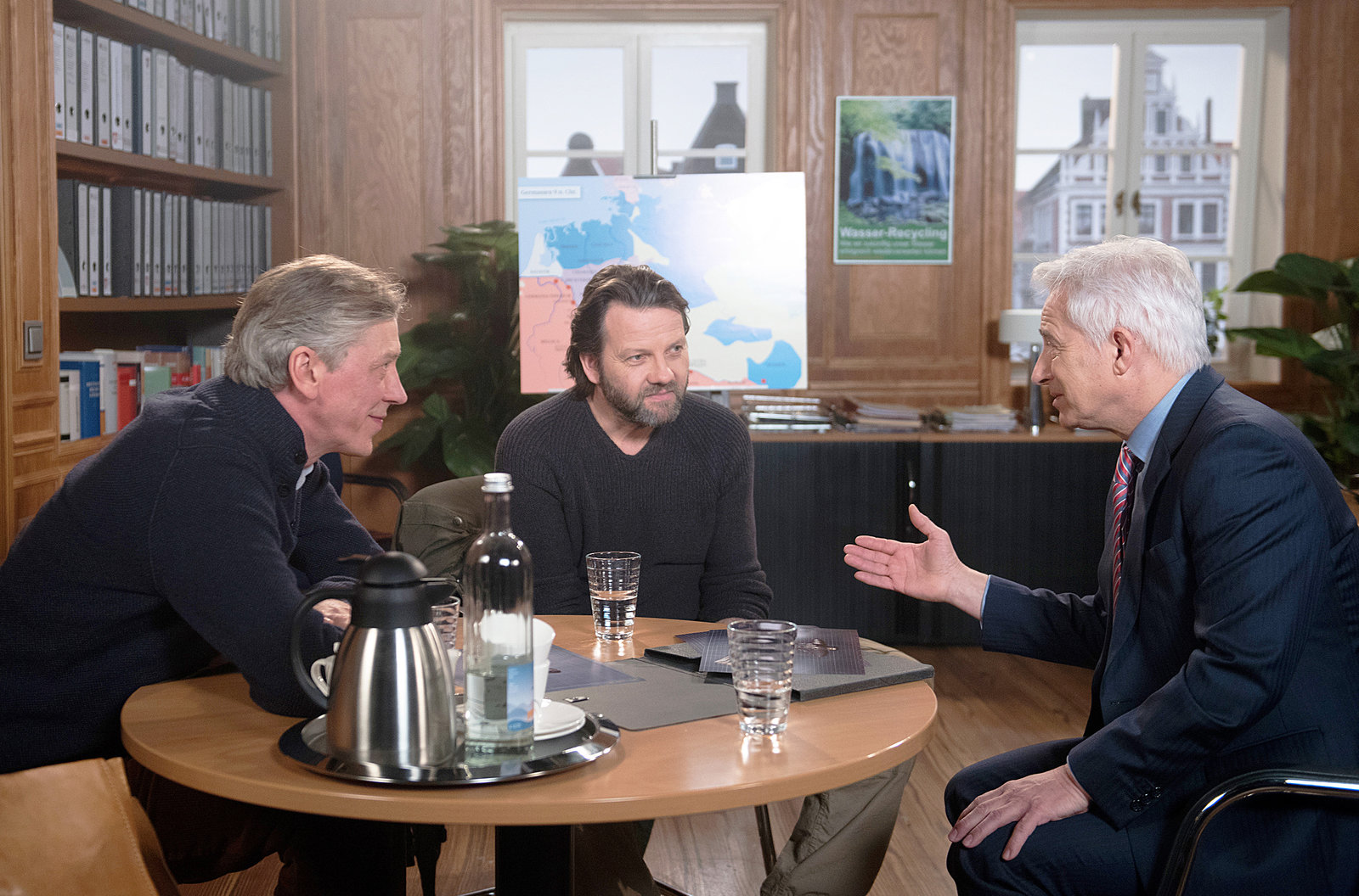 ZukunftsängsteDörte (Edelgard Hansen, M.) zweifelt, ob die "Konkreten" die Richtigen sind. Aber Merle (Anja Franke, r.) glaubt, gemeinsam mit Heiko (Sebastian Herrmann, l.) politisch etwas bewegen zu können.Bild: © ARD/Nicole Manthey