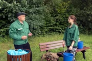 Kampf um AufmerksamkeitBei der gemeinsamen Gartenarbeit kann Simon (Thore Lüthje, l.) sich Viviens (Anna Mennicken, r.) Witz und Charme nicht entziehen.Bild: © ARD/Nicole Manthey