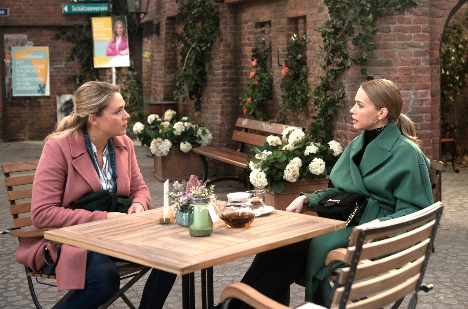 Eine UnbekannteAmelie (Lara-Isabelle Rentinck, r.) spricht mit Britta (Jelena Mitschke, l.) über die Entwicklungen in der Partei.Bild: © ARD/Nicole Manthey