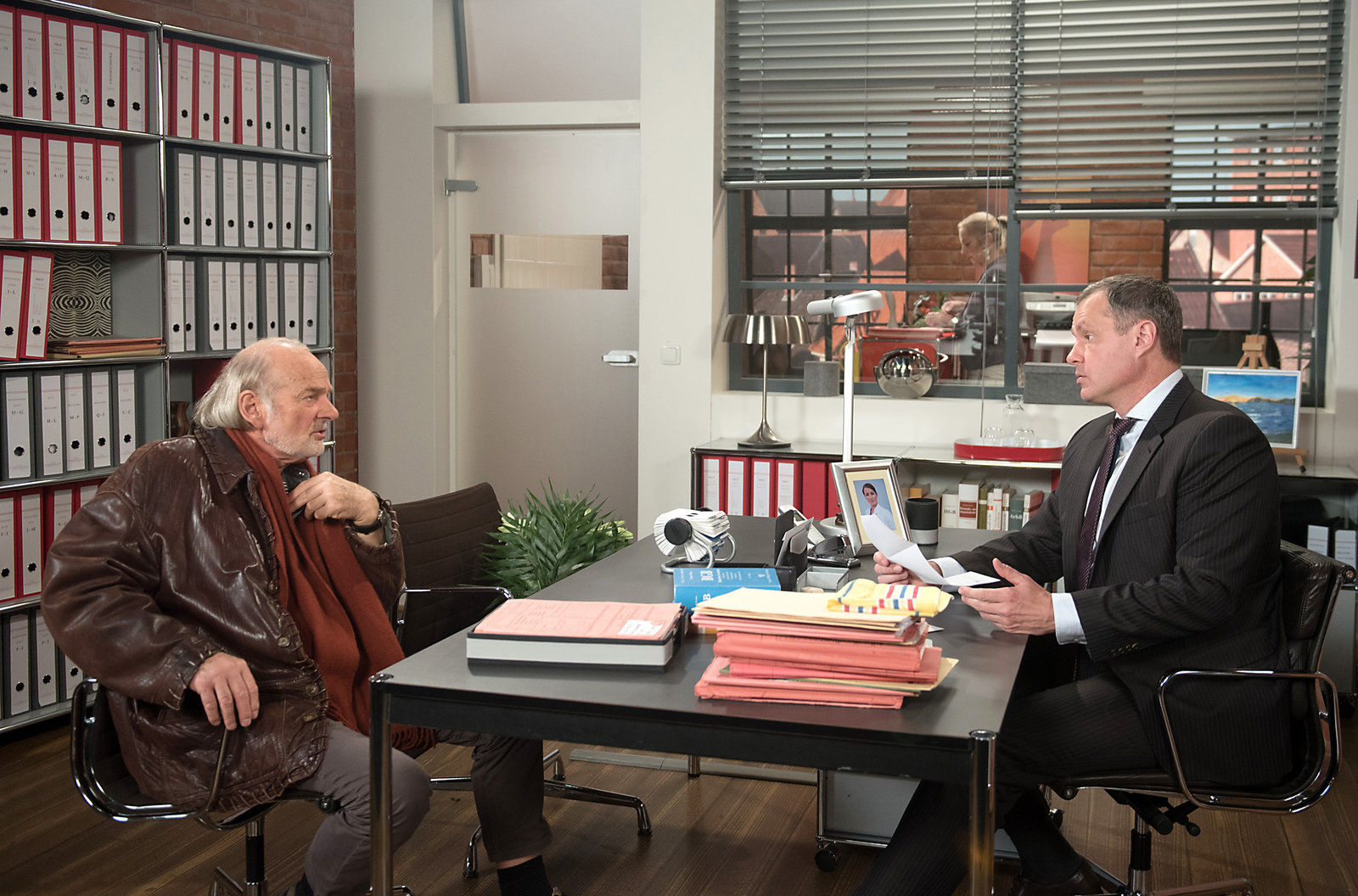 Angst um MerleGunter (Hermann Toelcke, l.) macht sich gr0ße Sorgen um Merle. Als Erika (Madeleine Lierck-Wien, r.) auch nichts über deren Verbleib weiss, will Gunter die Polizei einschalten.Bild: © ARD/Nicole Manthey