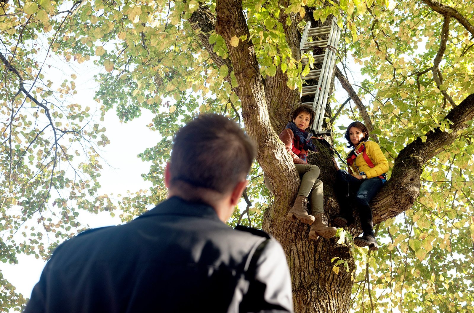 Im Schoß der FamilieHilli (Gerit King, r.) und Merle (Anja Franke, M.) wollen nicht zulassen, dass Gregor (Wolfram Grandezka, v.) den Baum fällen lässt und greifen zu drastischen Mitteln …Bild: © ARD/Nicole Manthey